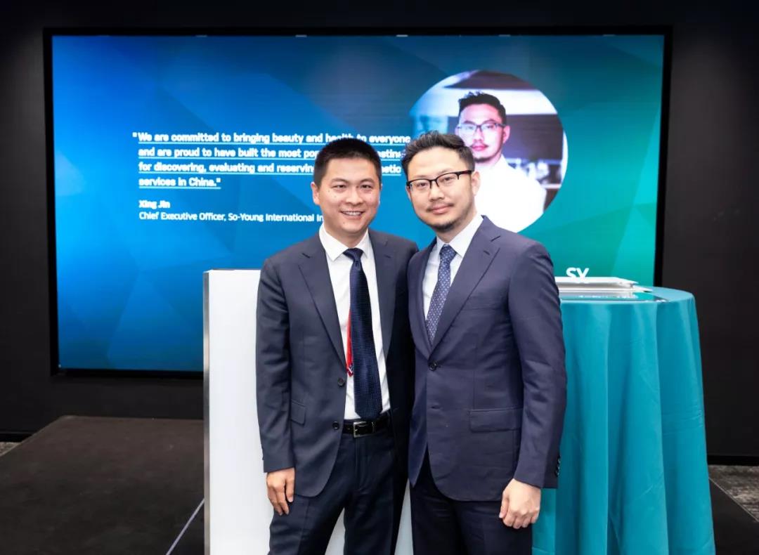 2019年5月2日,新氧登陆纳斯达克,左为经纬王华东,右为新氧金星