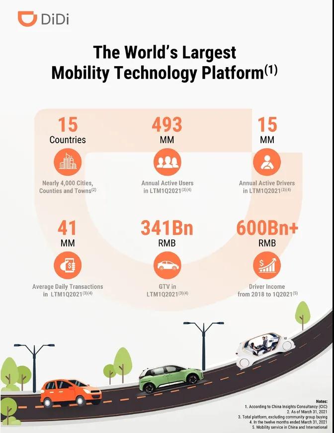 从单量和交易额来看,在截至2021年3月31日的12个月里,滴滴全球平均日交易量为4100万单,全平台总交易额为3410亿元人民币。2018年1月1日至2021年3月31日的3年时间内,平台司机总收入约6000亿元人民币。