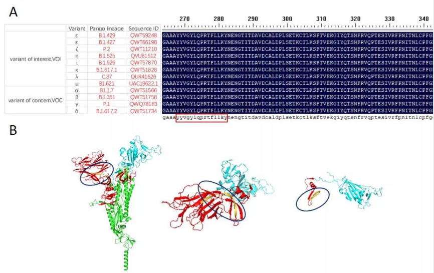 研究比对了这段造成强烈的CD8+ T细胞免疫的表位肽序列氨基酸序列与WHO公布的SARS-CoV-2多种突变株,均发现其序列高度保守,位于刺突蛋白NTD区域末端及RBD上游。这种高度保守的表位序列为评估疫苗免疫后CD8+介导的免疫反应提供了重要的工具。该表位有望成为评估疫苗免疫后CD8+ T细胞介导的免疫反应的重要工具,以及有望成为开发更有效广谱的新冠疫苗候选产品的潜在靶标。