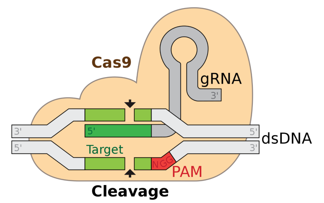 CRISPR-Cas9基因编辑技术;图片来源:Wikipedia