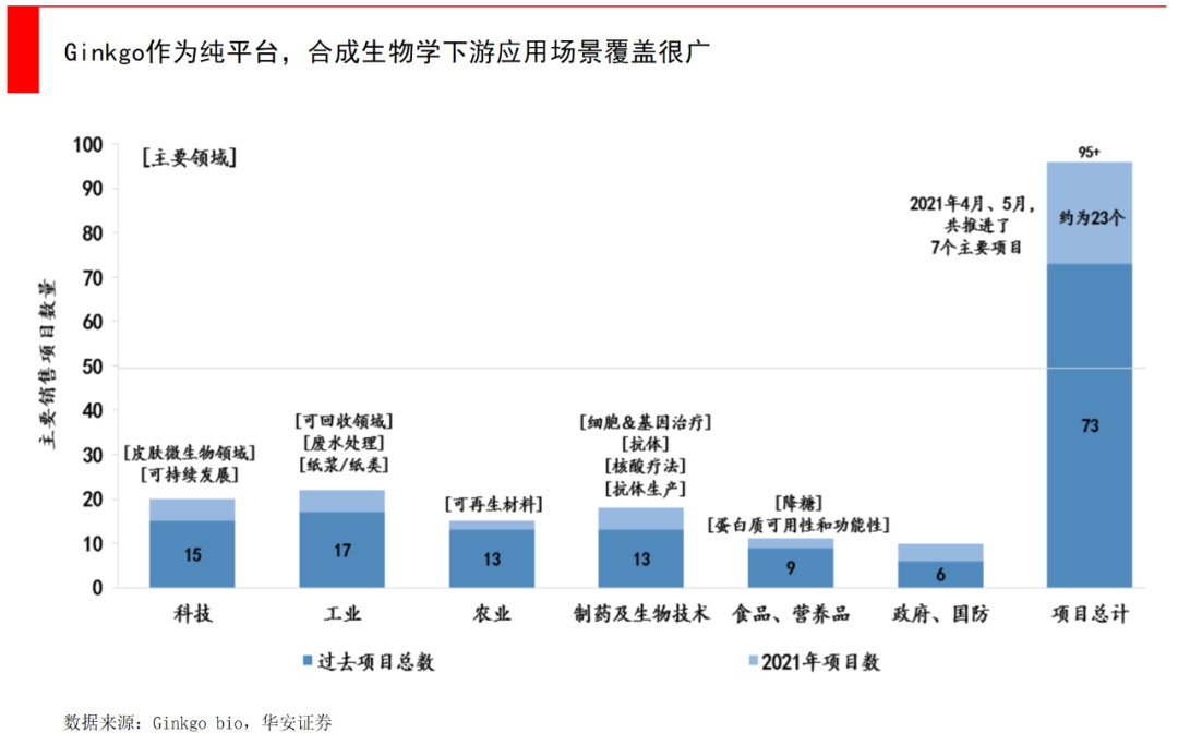 平台模式的优势在于,避开了自己研发产品失败的风险,而是作为基础设施存在。就像Gingko跟香精香料、工业化学品、动物饲料、农业、制药等各个领域的客户,一起做了各种各样的研发项目。